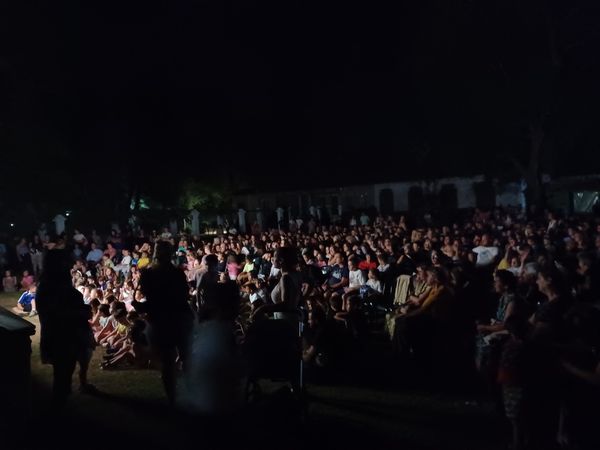 Οι κήποι γέμισαν ασφυκτικά από τους μικρούς μας λιλιπούτειους για την παράσταση του Καραγκιόζη. Οι 400 προσφερθείσες καρέκλες δεν κάλυψαν τις ανάγκες παιδιών και συνοδών και αρκετοί προτίμησαν το υπέροχο πράσινο γρασίδι