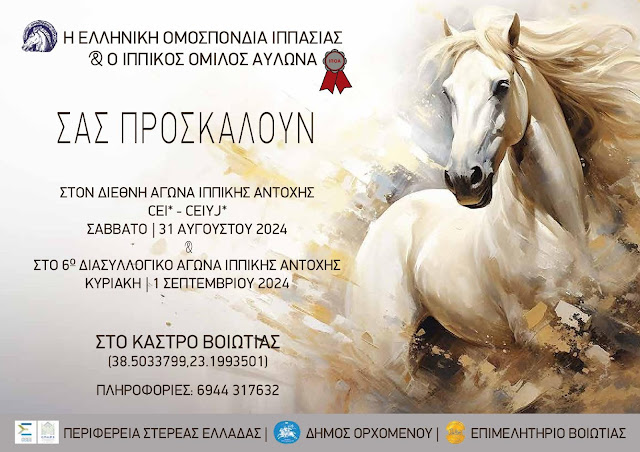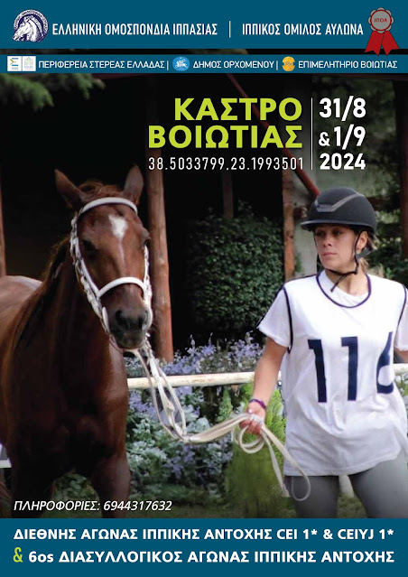 Με μεγάλο ενδιαφέρον αναμένεται αυτό το διήμερο 31 Αυγούστου και 1 Σεπτεμβρίου ο διεθνής αγώνας Ιππικής Αντοχής, που για πρώτη φορά στην ιστορία του αθλήματος θα διεξαχθεί στη Νότια Ελλάδα και συγκεκριμένα στο Κάστρο Βοιωτίας, με διοργανωτή τον Ιππικό Όμιλο Αυλώνα υπό την αιγίδα της Ελληνικής Ομοσπονδίας Ιππασίας.