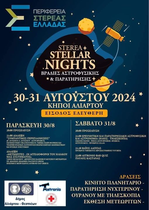 𝔰𝔱𝔢𝔯𝔢𝔞 Ε͟κ͟δ͟η͟λ͟ώ͟σ͟ε͟ι͟ς͟ Βραδιές Αστροφυσικής στους Κήπους Αλιάρτου admin 30 Αυγούστου, 2024 Ο ΟΥΡΑΝΟΣ ΜΕ ΤΑ ΑΣΤΡΑ !!! ΣΊΓΟΥΡΑ θέλουμε να ΠΡΟΣΦΕΡΟΥΜΕ τον ουρανό με τα άστρα. Είναι δύσκολο !!!! Μπορούμε όμως να σας τον ΔΕΙΞΟΥΜΕ ! ! ΠΑΡΑΣΚΕΥΗ 30 /8 ΣΑΒΒΑΤΟ 31/8 Μια αξέχαστη εμπειρία, για όλους !! Στους ΚΗΠΟΥΣ ΑΛΙΑΡΤΟΥ !!! Γεώργιος Ντασιώτης Tags: Κήποι Αλιάρτου Περιφέρεια Post navigation Previous 20 χρόνια η τοξοβολία στη ΘήβαNext Συνάντηση Σπανού με Μενδώνη Αφήστε μια απάντηση Ακύρωση απάντησηςΗ ηλ. διεύθυνση σας δεν δημοσιεύεται. Τα υποχρεωτικά πεδία σημειώνονται με *Σχόλιο * Όνομα * Email * Ιστότοπος Αποθήκευσε το όνομά μου, email, και τον ιστότοπο μου σε αυτόν τον πλοηγό για την επόμενη φορά που θα σχολιάσω. Related Stories Σπανός: «Η δικαστική απόφαση για το Δίστομο αφορά και συγκινεί κάθε ελεύθερο άνθρωπο!» 𝔰𝔱𝔢𝔯𝔢𝔞 Σπανός: «Η δικαστική απόφαση για το Δίστομο αφορά και συγκινεί κάθε ελεύθερο άνθρωπο!» 17 Απριλίου, 2026 ΘΗΒΑ:« Η ξεχασμένη πόλη της Αρχαίας Ελλάδας» Ε͟κ͟δ͟η͟λ͟ώ͟σ͟ε͟ι͟ς͟ Θ͟͞ή͟͞β͟͞α͟͞ ΘΗΒΑ:« Η ξεχασμένη πόλη της Αρχαίας Ελλάδας» 17 Απριλίου, 2026 Στου κύκλου το φως… ο τίτλος της ετήσιας εκδήλωσης του Λαογραφικού Ομίλου Ορχομενού Ε͟κ͟δ͟η͟λ͟ώ͟σ͟ε͟ι͟ς͟ Στου κύκλου το φως… ο τίτλος της ετήσιας εκδήλωσης του Λαογραφικού Ομίλου Ορχομενού 17 Απριλίου, 2026