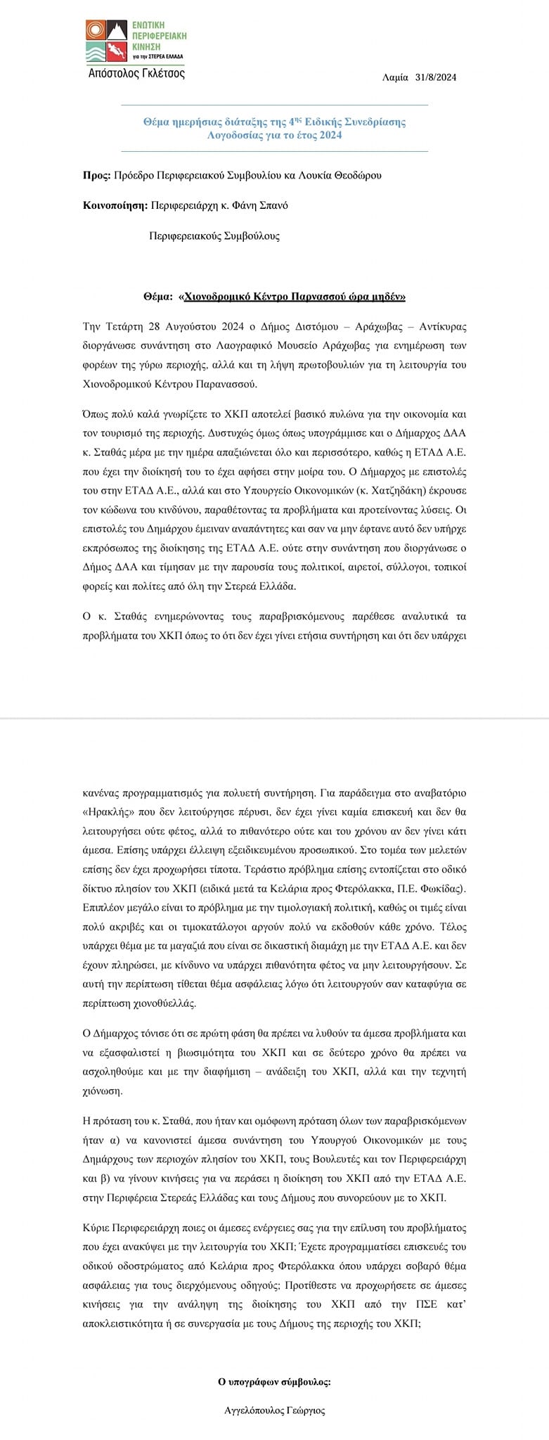 Όπως πολύ καλά γνωρίζετε το ΧΚΠ αποτελεί βασικό πυλώνα για την οικονομία και τον τουρισμό της περιοχής. Δυστυχώς όμως όπως υπογράμμισε και ο Δήμαρχος ΔΑΑ κ. Σταθάς μέρα με την ημέρα απαξιώνεται όλο και περισσότερο, καθώς η ΕΤΑΔ Α.Ε. που έχει την διοίκησή του το έχει αφήσει στην μοίρα του. Ο Δήμαρχος με επιστολές του στην ΕΤΑΔ Α.Ε., αλλά και στο Υπουργείο Οικονομικών (κ. Χατζηδάκη) έκρουσε τον κώδωνα του κινδύνου, παραθέτοντας τα προβλήματα και προτείνοντας λύσεις. Οι επιστολές του Δημάρχου έμειναν αναπάντητες και σαν να μην έφτανε αυτό δεν υπήρχε εκπρόσωπος της διοίκησης της ΕΤΑΔ Α.Ε. ούτε στην συνάντηση που διοργάνωσε ο Δήμος ΔΑΑ και τίμησαν με την παρουσία τους πολιτικοί, αιρετοί, σύλλογοι, τοπικοί φορείς και πολίτες από όλη την Στερεά Ελλάδα.— στην περιοχή Περιφέρεια Στερεάς Ελλάδας.