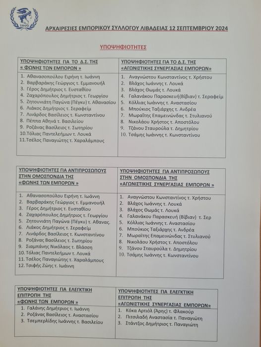 «ΕΚΛΟΓΕΣ ΕΜΠΟΡΙΚΟΥ ΣΥΛΛΟΓΟΥ ΛΙΒΑΔΕΙΑΣ, 12/09/2024»