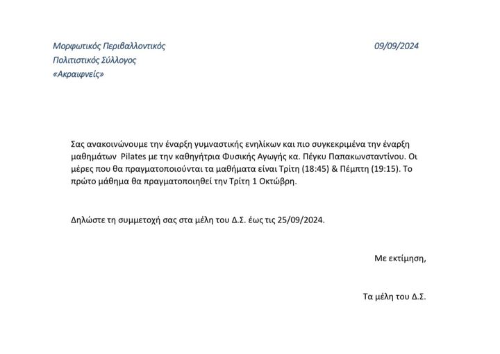 Β͇ο͇ι͇ω͇τ͇ί͇α͇ Μορφωτικος Περιβαλλοντικος Πολιτιστικος Συλλογος “Ακραιφνεις”:Ανακοίνωση admin 9 Σεπτεμβρίου, 2024 Tags: Μορφωτικος Περιβαλλοντικος Πολιτιστικος Συλλογος "Ακραιφνεις" Post navigation Previous #τοσκίτσοNext Πολιτιστικός Σύλλογος Παύλου “Υηττός”:Ευχαριστήριο Αφήστε μια απάντηση Ακύρωση απάντησηςΗ ηλ. διεύθυνση σας δεν δημοσιεύεται. Τα υποχρεωτικά πεδία σημειώνονται με *Σχόλιο * Όνομα * Email * Ιστότοπος Αποθήκευσε το όνομά μου, email, και τον ιστότοπο μου σε αυτόν τον πλοηγό για την επόμενη φορά που θα σχολιάσω. Related Stories Μουλκιώτης: «Οι περιφέρειες αποδέχονται σιωπηρά τον παραγκωνισμό τους σε ρόλο θεατή, εν μέσω κρίσης ακρίβειας» Β͇ο͇ι͇ω͇τ͇ί͇α͇ Μουλκιώτης: «Οι περιφέρειες αποδέχονται σιωπηρά τον παραγκωνισμό τους σε ρόλο θεατή, εν μέσω κρίσης ακρίβειας» 16 Απριλίου, 2026 Πρόγραμμα ονομαστηρίων Σεβασμιωτάτου Μητροπολίτου Θηβών, Λεβαδείας και Αυλίδος κ. Γεωργίου Β͇ο͇ι͇ω͇τ͇ί͇α͇ Πρόγραμμα ονομαστηρίων Σεβασμιωτάτου Μητροπολίτου Θηβών, Λεβαδείας και Αυλίδος κ. Γεωργίου 16 Απριλίου, 2026 Εορτή Ψηλαφήσεως Αποστόλου Θωμά Β͇ο͇ι͇ω͇τ͇ί͇α͇ Εορτή Ψηλαφήσεως Αποστόλου Θωμά 16 Απριλίου, 2026