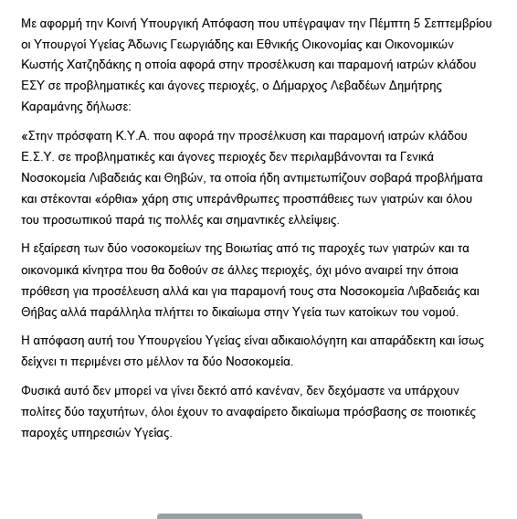 Β͇ο͇ι͇ω͇τ͇ί͇α͇ Δήλωση Δημάρχου Λεβαδέων για ΚΥΑ & Νοσοκομείο admin 11 Σεπτεμβρίου, 2024 Tags: Δήμος Λεβαδέων Λιβαδειά Post navigation Previous Ευχαριστήρια εκδήλωση του Ιερού Ναού Ευαγγελισμού της Θεοτόκου Λεβαδείας για τις εθελόντριες της Τράπεζας ΑγάπηςNext Σταθάς:«Ξαφνικός Θάνατος κατευθύνσεων Γ΄ Λυκείου Διστόμου και Αράχωβας» Αφήστε μια απάντηση Ακύρωση απάντησηςΗ ηλ. διεύθυνση σας δεν δημοσιεύεται. Τα υποχρεωτικά πεδία σημειώνονται με *Σχόλιο * Όνομα * Email * Ιστότοπος Αποθήκευσε το όνομά μου, email, και τον ιστότοπο μου σε αυτόν τον πλοηγό για την επόμενη φορά που θα σχολιάσω. Related Stories Πάσχα 2026 Β͇ο͇ι͇ω͇τ͇ί͇α͇ Πάσχα 2026 15 Απριλίου, 2026 Μουλκιώτης:Φιάσκο η πληρωμή των αγροτικών ενισχύσεων της 7ης Απριλίου Β͇ο͇ι͇ω͇τ͇ί͇α͇ Μουλκιώτης:Φιάσκο η πληρωμή των αγροτικών ενισχύσεων της 7ης Απριλίου 15 Απριλίου, 2026 Κατάθεση αιτήσεων από τους αγρότες για τη χρήση του δικτύου άρδευσης Β͇ο͇ι͇ω͇τ͇ί͇α͇ Κατάθεση αιτήσεων από τους αγρότες για τη χρήση του δικτύου άρδευσης 15 Απριλίου, 2026