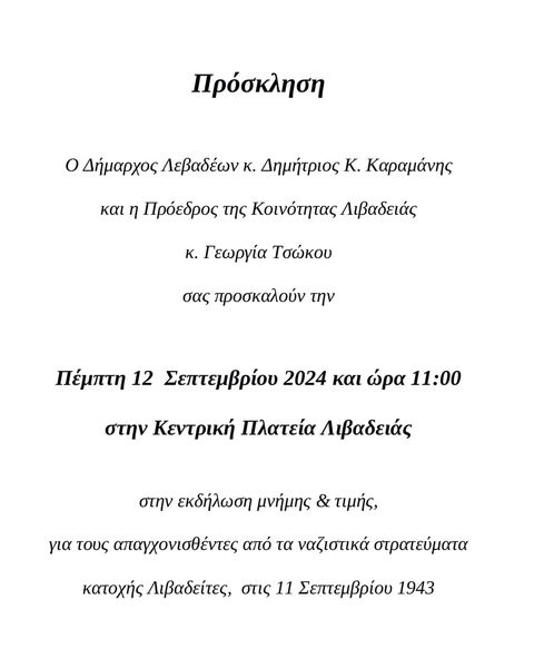 Β͇ο͇ι͇ω͇τ͇ί͇α͇ Ε͟κ͟δ͟η͟λ͟ώ͟σ͟ε͟ι͟ς͟ Εκδήλωση μνήμης και τιμής admin 12 Σεπτεμβρίου, 2024 Εκδήλωση μνήμης και τιμής για τους Απαγχονισθέντες Λιβαδείτες την Πέμπτη 12 Σεπτεμβρίου στις 11:00 στην Κεντρική Πλατεία. #dimoslevadeon#livadeia Tags: Δήμος Λεβαδέων Λιβαδειά Post navigation Previous Ακύρωση εκδήλωσηςNext Ο Δήμος Αμφίκλειας-Ελάτειας για το πρώτο κουδούνι Αφήστε μια απάντηση Ακύρωση απάντησηςΗ ηλ. διεύθυνση σας δεν δημοσιεύεται. Τα υποχρεωτικά πεδία σημειώνονται με *Σχόλιο * Όνομα * Email * Ιστότοπος Αποθήκευσε το όνομά μου, email, και τον ιστότοπο μου σε αυτόν τον πλοηγό για την επόμενη φορά που θα σχολιάσω. Related Stories Πάσχα 2026 Β͇ο͇ι͇ω͇τ͇ί͇α͇ Πάσχα 2026 15 Απριλίου, 2026 Μουλκιώτης:Φιάσκο η πληρωμή των αγροτικών ενισχύσεων της 7ης Απριλίου Β͇ο͇ι͇ω͇τ͇ί͇α͇ Μουλκιώτης:Φιάσκο η πληρωμή των αγροτικών ενισχύσεων της 7ης Απριλίου 15 Απριλίου, 2026 Κατάθεση αιτήσεων από τους αγρότες για τη χρήση του δικτύου άρδευσης Β͇ο͇ι͇ω͇τ͇ί͇α͇ Κατάθεση αιτήσεων από τους αγρότες για τη χρήση του δικτύου άρδευσης 15 Απριλίου, 2026