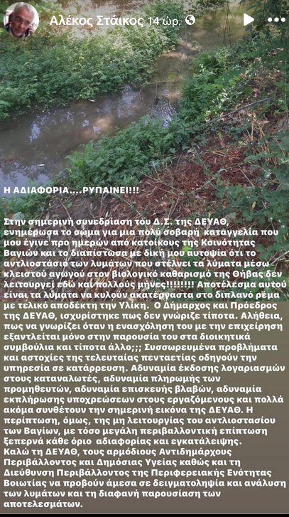 Θ͟͞ή͟͞β͟͞α͟͞ Στάικος:Τα λύματα των Βαγίων καταλήγουν στην Υλίκη admin 12 Σεπτεμβρίου, 2024 Αλέκος Στάικος Επικεφαλής «ΣΥΝΕΡΓΑΣΙΑ ΓΙΑ ΤΗΝ ΑΝΑΠΤΥΞΗ». Tags: Άλεκος Στάικος Υλίκη Post navigation Previous Γιατί διχάζετε τους γιατρούς της Βοιωτίας, αποκλείοντας τους Νοσοκομειακούς από το επίδομα κ.Γεωργιάδη;Next ΛΑ.ΣΥ. Δ. Δελφών για την έναρξη της νέας σχολικής χρονιάς Αφήστε μια απάντηση Ακύρωση απάντησηςΗ ηλ. διεύθυνση σας δεν δημοσιεύεται. Τα υποχρεωτικά πεδία σημειώνονται με *Σχόλιο * Όνομα * Email * Ιστότοπος Αποθήκευσε το όνομά μου, email, και τον ιστότοπο μου σε αυτόν τον πλοηγό για την επόμενη φορά που θα σχολιάσω. Related Stories Διακοπή ρεύματος στη Θήβα & σε χωριά Θ͟͞ή͟͞β͟͞α͟͞ Διακοπή ρεύματος στη Θήβα & σε χωριά 15 Απριλίου, 2026 Σύγκληση ΤΕΣΟΠ στο Γραφείο Δημάρχου του Δήμου Θηβαίων Θ͟͞ή͟͞β͟͞α͟͞ Σύγκληση ΤΕΣΟΠ στο Γραφείο Δημάρχου του Δήμου Θηβαίων 15 Απριλίου, 2026 📢📣 Κυκλοφοριακές ρυθμίσεις για την εκτέλεση εργασιών του έργου «Αποκαταστάσεις ζημιών από φυσικές καταστροφές» Θ͟͞ή͟͞β͟͞α͟͞ 📢📣 Κυκλοφοριακές ρυθμίσεις για την εκτέλεση εργασιών του έργου «Αποκαταστάσεις ζημιών από φυσικές καταστροφές» 15 Απριλίου, 2026