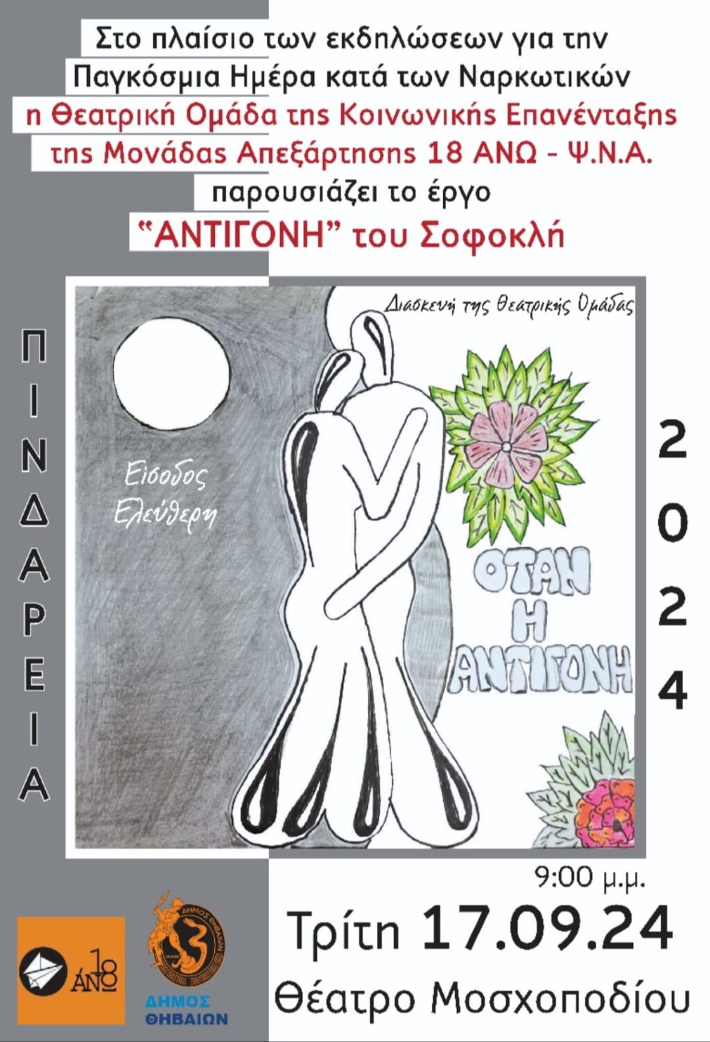 18 ΑΝΩ -Ψ.Ν.Α. παρουσιάζουν στην Θήβα την Αντιγόνη του Σοφοκλή .