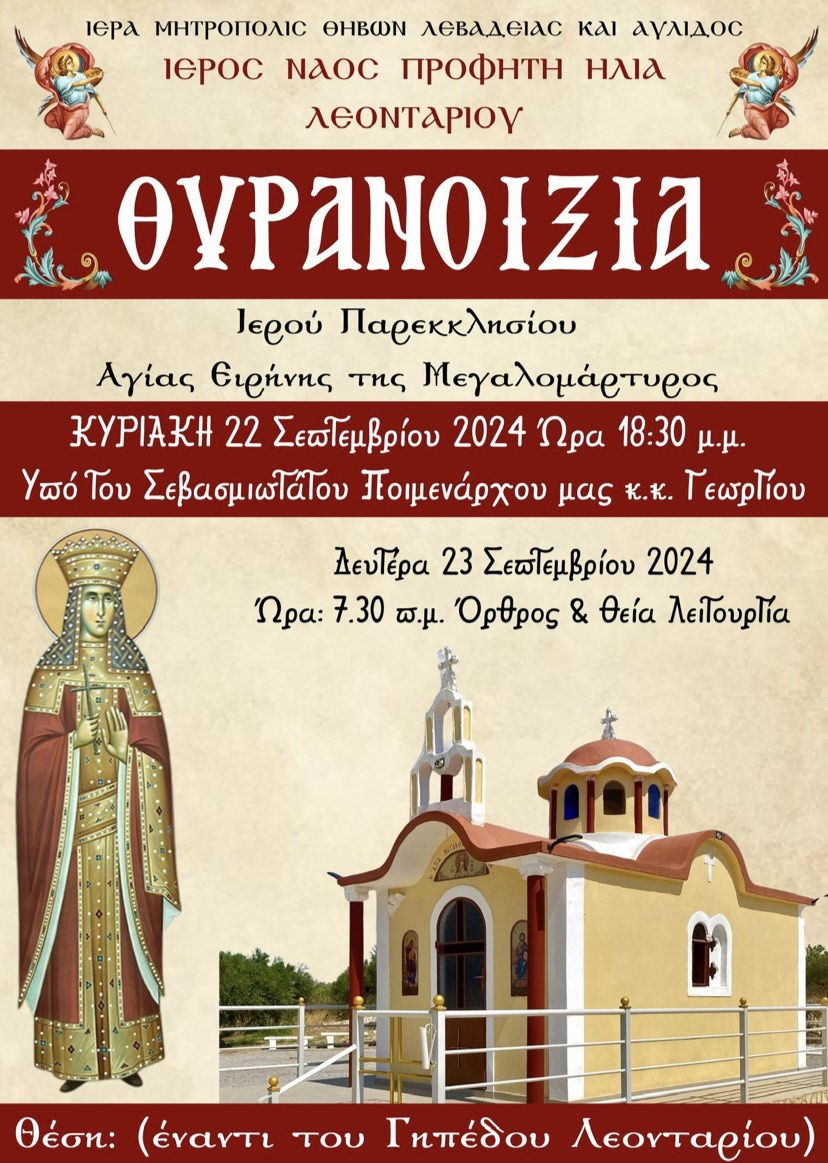 Β͇ο͇ι͇ω͇τ͇ί͇α͇ Θυρανοίξια Ιερού Παρεκκλησίου Αγίας Ειρήνης Λεονταρίου admin 18 Σεπτεμβρίου, 2024 Tags: Μητροπολίτης Θηβών Post navigation Previous Εκπαιδευτικά Εργαστήρια Τοπικής Ιστορίας του Δήμου ΛεβαδέωνNext «BUCKETDRUMMING στη Βιβλιοθήκη!» Αφήστε μια απάντηση Ακύρωση απάντησηςΗ ηλ. διεύθυνση σας δεν δημοσιεύεται. Τα υποχρεωτικά πεδία σημειώνονται με *Σχόλιο * Όνομα * Email * Ιστότοπος Αποθήκευσε το όνομά μου, email, και τον ιστότοπο μου σε αυτόν τον πλοηγό για την επόμενη φορά που θα σχολιάσω. Related Stories 1ο Περιφερειακό Συνέδριο Ελληνικής Καρδιολογικής Εταιρείας Β͇ο͇ι͇ω͇τ͇ί͇α͇ 1ο Περιφερειακό Συνέδριο Ελληνικής Καρδιολογικής Εταιρείας 20 Απριλίου, 2026 Γιορτάζει το Ακραίφνιο Β͇ο͇ι͇ω͇τ͇ί͇α͇ Γιορτάζει το Ακραίφνιο 20 Απριλίου, 2026 Ο Αγροτικός Σύλλογος Ορχομενού ανακοίνωσε την έναρξη διαδικασίας καταγραφής ενδιαφέροντος για παραγωγούς που επιθυμούν να καλλιεργήσουν σόγια Β͇ο͇ι͇ω͇τ͇ί͇α͇ Ο Αγροτικός Σύλλογος Ορχομενού ανακοίνωσε την έναρξη διαδικασίας καταγραφής ενδιαφέροντος για παραγωγούς που επιθυμούν να καλλιεργήσουν σόγια 20 Απριλίου, 2026