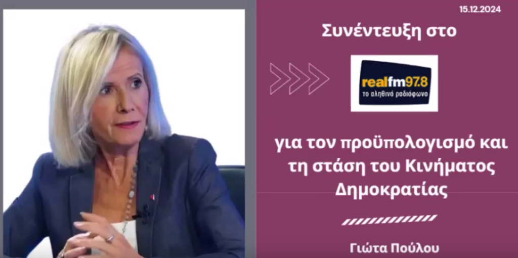 Συνέντευξη στο Real fm 97,8 με τους Ρίτσα Μπιζόγλη και Τέρενς Κουίκ για τον προϋπολογισμό 2025 και τη στάση του Κινήματος Δημοκρατίας.