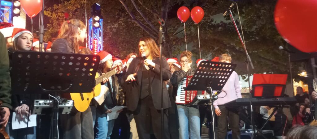 Το πρόγραμμα της εκδήλωσης παρουσίασε η Θηβαία δημοσιογράφος – ηθοποιός Κατερίνα Ζαρίφη η οποία εμψύχωσε κατάλληλα την εκδήλωση, φωτογραφήθηκε με τον Δήμαρχο και το κοινό και δήλωσε ιδιαίτερα χαρούμενη που βρισκόταν μαζί μας σ’ αυτή την όμορφη εορταστική στιγμή.