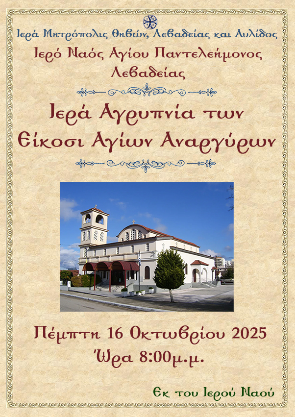Β͇ο͇ι͇ω͇τ͇ί͇α͇ Αγρυπνία στον Ιερό Ναό Αγίου Παντελεήμονος Λεβαδείας admin 15 Οκτωβρίου, 2025 Tags: IM Θηβών Λεβαδείας κ Αυλίδος Μητροπολίτης Θηβών Continue Reading Previous: Συνεστίαση γλέντι του ΚΚΕ ΛιβαδειάςNext: Ευχές Σεβασμιωτάτου Ποιμενάρχου μας κ. Γεωργίου προς τον Σεβασμιώτατο Μητροπολίτη Φθιώτιδος κ. Συμεών Αφήστε μια απάντηση Ακύρωση απάντησηςΗ ηλ. διεύθυνση σας δεν δημοσιεύεται. Τα υποχρεωτικά πεδία σημειώνονται με *Σχόλιο * Όνομα * Email * Ιστότοπος Αποθήκευσε το όνομά μου, email, και τον ιστότοπο μου σε αυτόν τον πλοηγό για την επόμενη φορά που θα σχολιάσω. Related Stories Γιώτα Πούλου στη Βουλή(Video) Β͇ο͇ι͇ω͇τ͇ί͇α͇ Γιώτα Πούλου στη Βουλή(Video) 22 Οκτωβρίου, 2025 Ενημέρωση του ΚΕΠΒ Θήβας στη Λιβαδειά Β͇ο͇ι͇ω͇τ͇ί͇α͇ Ενημέρωση του ΚΕΠΒ Θήβας στη Λιβαδειά 22 Οκτωβρίου, 2025 Οι αστυνομικοί τίμησαν τον προστάτη τους Άγιο Αρτέμιο Β͇ο͇ι͇ω͇τ͇ί͇α͇ Οι αστυνομικοί τίμησαν τον προστάτη τους Άγιο Αρτέμιο 22 Οκτωβρίου, 2025
