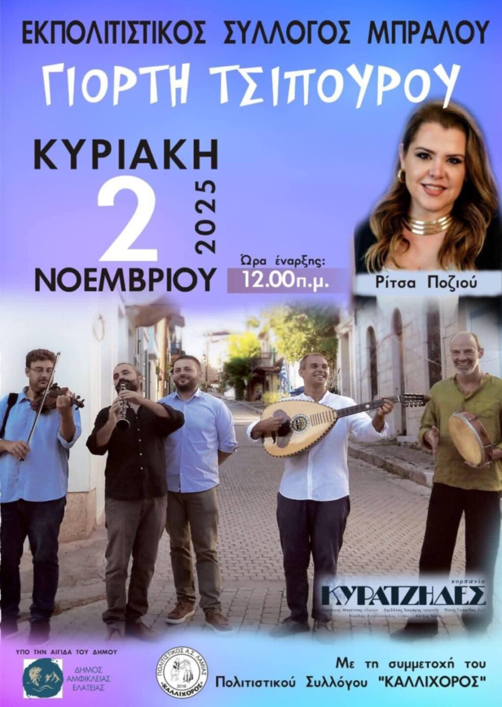 ➡️ Ανοιχτή πρόσκληση προς όλους απευθύνει και ο Εκπολιτιστικός Σύλλογος Μπράλου για τη Γιορτή Τσίπουρου που θα πραγματοποιηθεί την Κυριακή 2 Νοεμβρίου 2025 και ώρα 12:00μ.μ. στην κεντρική πλατεία του χωριού. Η Ρίτσα Ποζιού, η κομπανία “Κυρατζήδες” και ο Πολιτιστικός Σύλλογος “Καλλίχορος” μας υπόσχονται ένα ξέφρενο γλέντι!