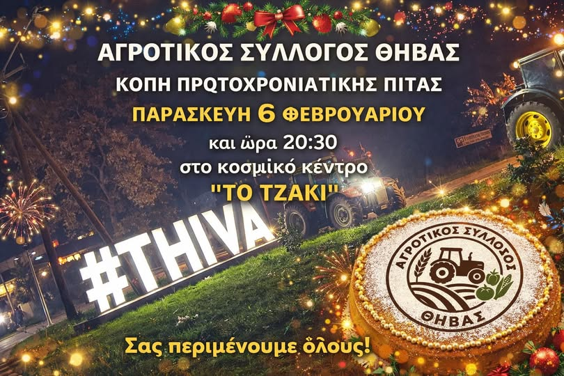 Ε͟κ͟δ͟η͟λ͟ώ͟σ͟ε͟ι͟ς͟ Αγροτικός Σύλλογος Θήβας:Κοπή Πίτας admin 3 Φεβρουαρίου, 2026 Tags: Αγροτικός Σύλλογος Θήβας Post navigation Previous Όχι στην Ποινική δίωξη του Γιώργου ΚούλαNext #τοσκίτσο Αφήστε μια απάντηση Ακύρωση απάντησηςΗ ηλ. διεύθυνση σας δεν δημοσιεύεται. Τα υποχρεωτικά πεδία σημειώνονται με *Σχόλιο * Όνομα * Email * Ιστότοπος Αποθήκευσε το όνομά μου, email, και τον ιστότοπο μου σε αυτόν τον πλοηγό για την επόμενη φορά που θα σχολιάσω. Related Stories 🎉Αποκριάτικο party στην Άμφισσα για την έναρξη των Αποκριών Ε͟κ͟δ͟η͟λ͟ώ͟σ͟ε͟ι͟ς͟ 🎉Αποκριάτικο party στην Άμφισσα για την έναρξη των Αποκριών 3 Φεβρουαρίου, 2026 3η Μαθητική Αποκριάτικη Παρέλαση Θήβας : Κανόνες & Όροι Συμμετοχής Ε͟κ͟δ͟η͟λ͟ώ͟σ͟ε͟ι͟ς͟ 3η Μαθητική Αποκριάτικη Παρέλαση Θήβας : Κανόνες & Όροι Συμμετοχής 3 Φεβρουαρίου, 2026 Εκδήλωση με επίκεντρο τις πρόσφατες αλλαγές στο εργασιακό πλαίσιο και την εφαρμογή της Ψηφιακής Κάρτας Εργασίας διοργάνωσε ο Σύλλογος Φοροτεχνικών Ελευθέρων Επαγγελματιών Θηβών Βοιωτίας Ε͟κ͟δ͟η͟λ͟ώ͟σ͟ε͟ι͟ς͟ Εκδήλωση με επίκεντρο τις πρόσφατες αλλαγές στο εργασιακό πλαίσιο και την εφαρμογή της Ψηφιακής Κάρτας Εργασίας διοργάνωσε ο Σύλλογος Φοροτεχνικών Ελευθέρων Επαγγελματιών Θηβών Βοιωτίας 3 Φεβρουαρίου, 2026