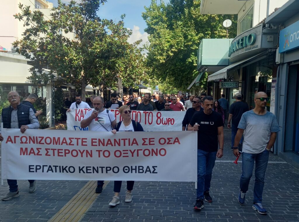 δεκάδες νεκρούς και σακατεμένους εργάτες το Δ.Σ του Εργατικού Κέντρου Θήβας αποφάσισε ομόφωνα την πραγματοποίηση συλλαλητηρίου το Σάββατο 28 Φεβρουαρίου, ημέρα Σάββατο, στις 11 το πρωί στην Κεντρική πλατεία της Θήβας.