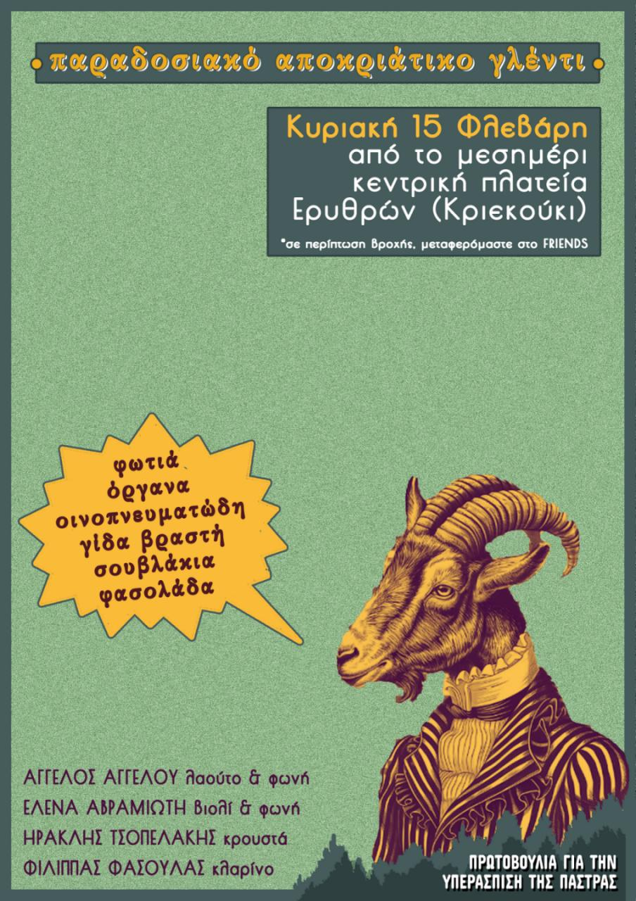 📣🔥 Κυριακή 15 Φλεβάρη γλεντάμε συλλογικά και καρναβαλικά στην κεντρική πλατεία Ερυθρών από τις 13.00 μέχρι όσο πάει, με παραδοσιακή μουσική, φαγητά και ποτά.