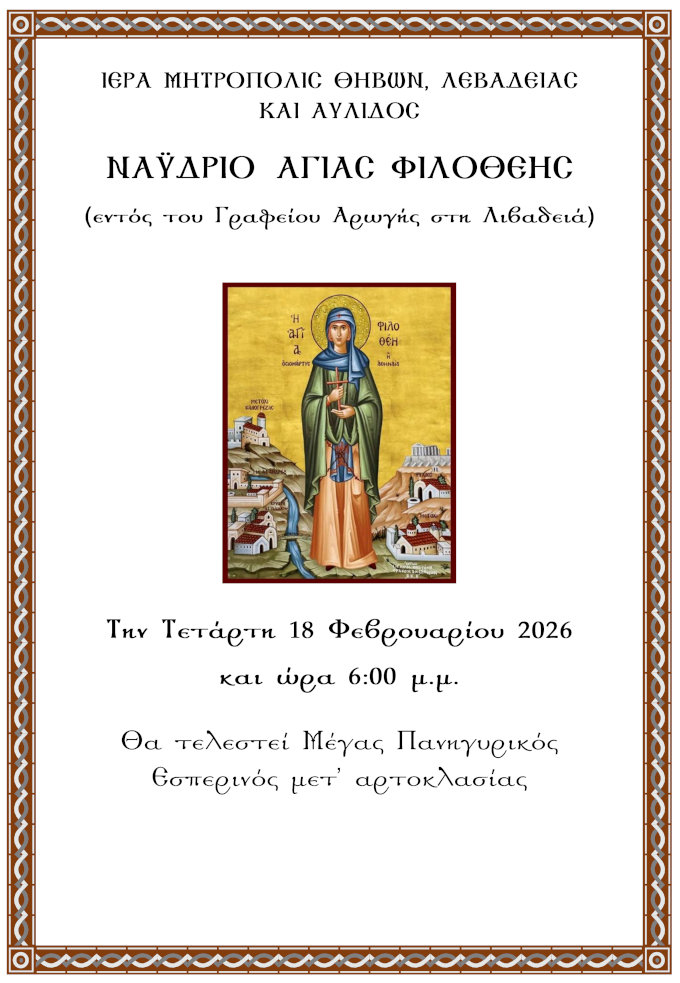 Β͇ο͇ι͇ω͇τ͇ί͇α͇ Εσπερινός στο Ναΰδριο της Αγίας Φιλοθέης στη Λιβαδειά admin 13 Φεβρουαρίου, 2026 Tags: IM Θηβών Λεβαδείας κ Αυλίδος Μητροπολίτης Θηβών Post navigation Previous Επίσκεψη του Επικεφαλής της Ενωτικής Περιφερειακής Κίνησης στις εγκαταστάσεις της ΕΑΒNext Ευλογία βασιλόπιτας στο 6ο Δημοτικό Σχολείο Λιβαδειάς Αφήστε μια απάντηση Ακύρωση απάντησηςΗ ηλ. διεύθυνση σας δεν δημοσιεύεται. Τα υποχρεωτικά πεδία σημειώνονται με *Σχόλιο * Όνομα * Email * Ιστότοπος Αποθήκευσε το όνομά μου, email, και τον ιστότοπο μου σε αυτόν τον πλοηγό για την επόμενη φορά που θα σχολιάσω. Related Stories Μουλκιώτης:21 Απριλίου 1967.Η μέρα που η Δημοκρατία φιμώθηκε με τη Βία Β͇ο͇ι͇ω͇τ͇ί͇α͇ Μουλκιώτης:21 Απριλίου 1967.Η μέρα που η Δημοκρατία φιμώθηκε με τη Βία 21 Απριλίου, 2026 Μουλκιώτης:Συνάντηση με Κακούρη & Πούλο Β͇ο͇ι͇ω͇τ͇ί͇α͇ Μουλκιώτης:Συνάντηση με Κακούρη & Πούλο 21 Απριλίου, 2026 👧👦Οι πασχαλινές εκδηλώσεις του Δήμου Λεβαδέων για τα παιδιά ολοκληρώθηκαν Β͇ο͇ι͇ω͇τ͇ί͇α͇ 👧👦Οι πασχαλινές εκδηλώσεις του Δήμου Λεβαδέων για τα παιδιά ολοκληρώθηκαν 21 Απριλίου, 2026
