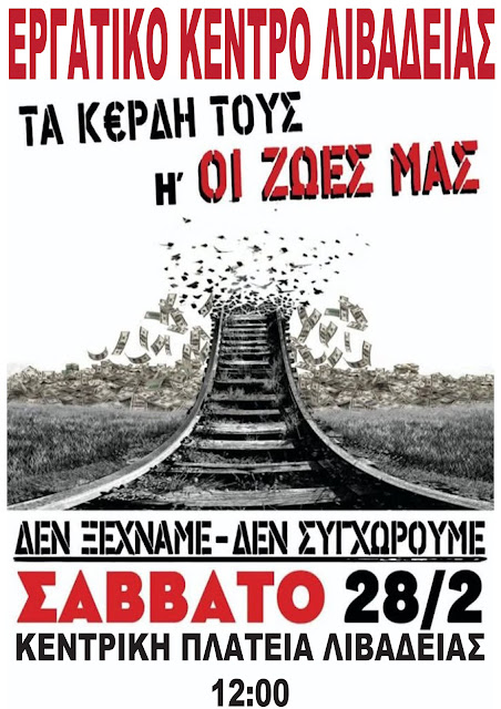 Στις 28 Φεβρουαρίου 2026, ημέρα Σάββατο, η κεντρική πλατεία της Λιβαδειάς θα γεμίσει με πολίτες και εργαζόμενους που θα συμμετάσχουν στο Συλλαλητήριο μνήμης για τα 3 χρόνια από το τραγικό έγκλημα των Τεμπών, όπου 57 άνθρωποι, κυρίως νέοι, έχασαν τη ζωή τους. Το Εργατικό Κέντρο Λιβαδειάς έχει κηρύξει 2ωρη στάση εργασίας από τις 12:00 έως τις 14:00, προκειμένου να διευκολύνει τη συμμετοχή των εργαζομένων.