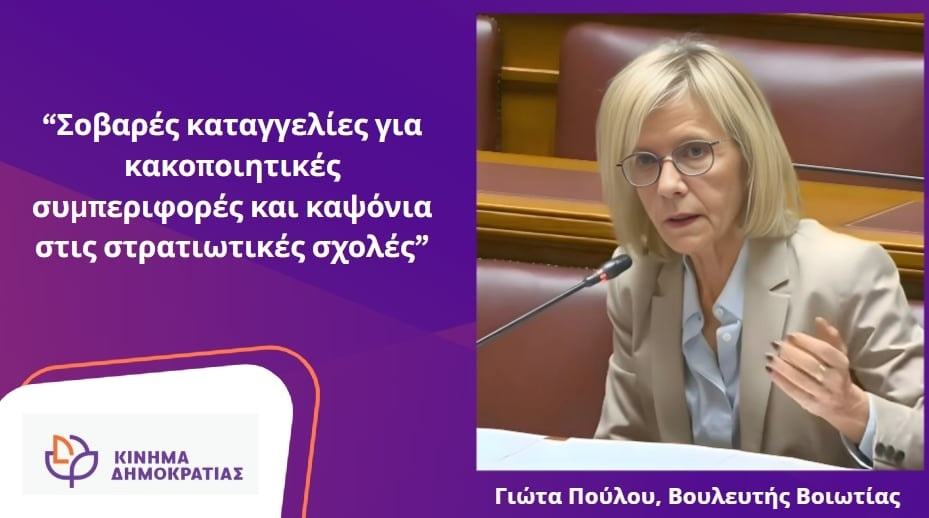 🟣 Το Κίνημα Δημοκρατίας απαιτεί τιμωρία των υπευθύνων χωρίς καμία ανοχή, ριζική αλλαγή του παιδαγωγικού πλαισίου λειτουργίας των στρατιωτικών σχολών και προστασία της σωματικής και ψυχικής υγείας των νέων που επιλέγουν να υπηρετήσουν την πατρίδα ως μόνιμοι αξιωματικοί και υπαξιωματικοί.