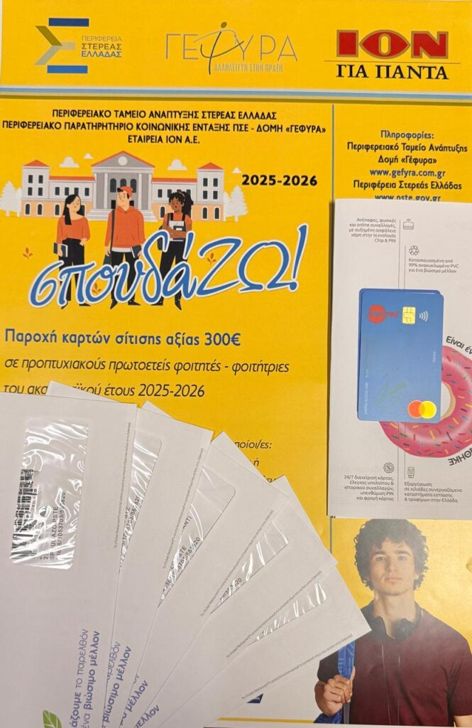Η Περιφέρεια Στερεάς Ελλάδας, μέσω της δομής «Γέφυρα», ολοκλήρωσε για ακόμη μια χρονιά τη δράση «σπουδά…ΖΩ!», με στόχο την υποστήριξη οικονομικά ευάλωτων οικογενειών και ειδικότερα των πρωτοετών φοιτητών και φοιτητριών κατά την έναρξη της ακαδημαϊκής τους πορείας για το έτος 2025 – 2026.