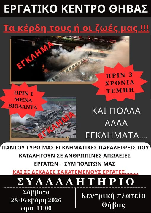 Θ͟͞ή͟͞β͟͞α͟͞ Θήβα:Συλλαλητήριο για τα ΤΕΜΠΗ admin 27 Φεβρουαρίου, 2026 Tags: Εργατικό Κεντρο Θήβας ΘΗΒΑ ΤΕΜΠΗ Post navigation Previous Έκτακτη προγραμματισμένη Γενική Συνέλευση του Σωματείου Εστίασης Θήβας(Video)Next Μίλτος Πασχαλίδης:Δύο νύχτες στο Σαράντι Αφήστε μια απάντηση Ακύρωση απάντησηςΗ ηλ. διεύθυνση σας δεν δημοσιεύεται. Τα υποχρεωτικά πεδία σημειώνονται με *Σχόλιο * Όνομα * Email * Ιστότοπος Αποθήκευσε το όνομά μου, email, και τον ιστότοπο μου σε αυτόν τον πλοηγό για την επόμενη φορά που θα σχολιάσω. Related Stories Διακοπή ρεύματος στη Θήβα & σε χωριά Θ͟͞ή͟͞β͟͞α͟͞ Διακοπή ρεύματος στη Θήβα & σε χωριά 15 Απριλίου, 2026 Σύγκληση ΤΕΣΟΠ στο Γραφείο Δημάρχου του Δήμου Θηβαίων Θ͟͞ή͟͞β͟͞α͟͞ Σύγκληση ΤΕΣΟΠ στο Γραφείο Δημάρχου του Δήμου Θηβαίων 15 Απριλίου, 2026 📢📣 Κυκλοφοριακές ρυθμίσεις για την εκτέλεση εργασιών του έργου «Αποκαταστάσεις ζημιών από φυσικές καταστροφές» Θ͟͞ή͟͞β͟͞α͟͞ 📢📣 Κυκλοφοριακές ρυθμίσεις για την εκτέλεση εργασιών του έργου «Αποκαταστάσεις ζημιών από φυσικές καταστροφές» 15 Απριλίου, 2026