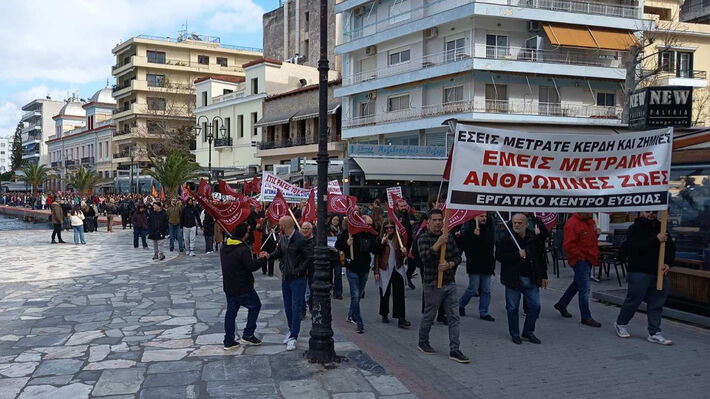 Χιλιάδες διαδηλωτές στη Χαλκίδα, τη Λαμία, τη Λιβαδειά, τη Θήβα, την Άμφισσα, το Καρπενήσι, την Αταλάντη, το Αλιβέρι, το Μαντούδι, την Ιστιαία και την Κάρυστο πλημμύρισαν και φέτος τις πλατείες και τους δρόμους, διατρανώνοντας μαζικά και αποφασιστικά: «Ή με τα κέρδη τους, ή με τη ζωή».