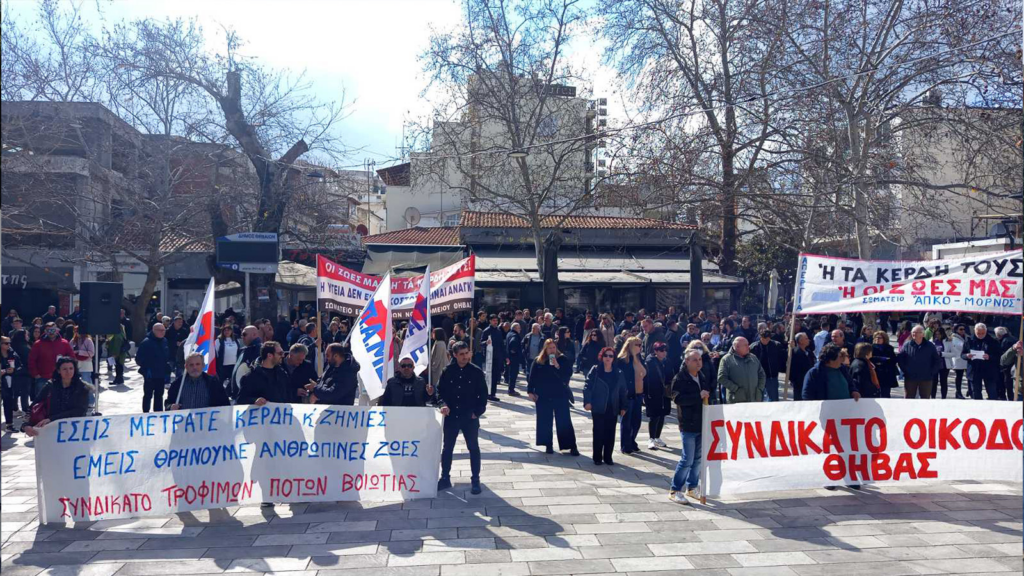 Με μεγάλη συμμετοχή εργαζομένων, αγροτών, επαγγελματιών μαθητών και νεολαίας πραγματοποιήθηκε και η συγκέντρωση στη Λιβαδειά, που κάλεσε το Εργατικό Κέντρο της πόλης.