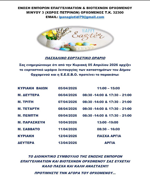 Β͇ο͇ι͇ω͇τ͇ί͇α͇ Ένωση Ε.Ε.Β. Ορχομενού : Το εορταστικό ωράριο για τις αγορές του Πάσχα admin 6 Απριλίου, 2026 Tags: ΕΕΕΒ Ορχομενού Post navigation Previous Η Περιφέρεια Στερεάς ενημερώνει τους κατόχους αγροτικών μηχανημάτωνNext Η Περιφέρεια Στερεάς Ελλάδας στο “Tourism Open Days Istanbul 2026” Αφήστε μια απάντηση Ακύρωση απάντησηςΗ ηλ. διεύθυνση σας δεν δημοσιεύεται. Τα υποχρεωτικά πεδία σημειώνονται με *Σχόλιο * Όνομα * Email * Ιστότοπος Αποθήκευσε το όνομά μου, email, και τον ιστότοπο μου σε αυτόν τον πλοηγό για την επόμενη φορά που θα σχολιάσω. Related Stories Πάσχα 2026 Β͇ο͇ι͇ω͇τ͇ί͇α͇ Πάσχα 2026 15 Απριλίου, 2026 Μουλκιώτης:Φιάσκο η πληρωμή των αγροτικών ενισχύσεων της 7ης Απριλίου Β͇ο͇ι͇ω͇τ͇ί͇α͇ Μουλκιώτης:Φιάσκο η πληρωμή των αγροτικών ενισχύσεων της 7ης Απριλίου 15 Απριλίου, 2026 Κατάθεση αιτήσεων από τους αγρότες για τη χρήση του δικτύου άρδευσης Β͇ο͇ι͇ω͇τ͇ί͇α͇ Κατάθεση αιτήσεων από τους αγρότες για τη χρήση του δικτύου άρδευσης 15 Απριλίου, 2026