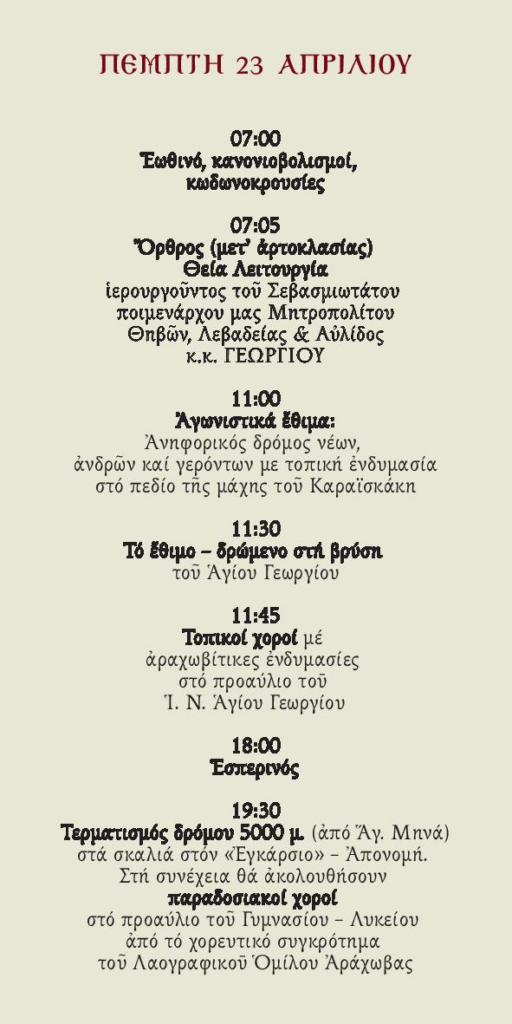 Ε͟κ͟δ͟η͟λ͟ώ͟σ͟ε͟ι͟ς͟ “Πανηγυράκι Αραχώβας” admin 9 Απριλίου, 2026 Tags: Πανηγυράκι Αράχωβας Post navigation Previous Συνάντηση του Περιφερειάρχη Στερεάς Ελλάδας με τον Πρέσβη της ΚίναςNext Σε προσωρινές κυκλοφοριακές ρυθμίσεις προχωρά ο Δήμος Ορχομενού, έπειτα από ζημιές που καταγράφηκαν στην περιοχή «ποταμάκι» στο Κλειδί της 6. Αφήστε μια απάντηση Ακύρωση απάντησηςΗ ηλ. διεύθυνση σας δεν δημοσιεύεται. Τα υποχρεωτικά πεδία σημειώνονται με *Σχόλιο * Όνομα * Email * Ιστότοπος Αποθήκευσε το όνομά μου, email, και τον ιστότοπο μου σε αυτόν τον πλοηγό για την επόμενη φορά που θα σχολιάσω. Related Stories Ο Όμιλος Φίλων Θεάτρου Λιβαδειάς ανεβάζει την παράσταση “Εχθροί εξ Αίματος” του Αρκά Ε͟κ͟δ͟η͟λ͟ώ͟σ͟ε͟ι͟ς͟ Ο Όμιλος Φίλων Θεάτρου Λιβαδειάς ανεβάζει την παράσταση “Εχθροί εξ Αίματος” του Αρκά 15 Απριλίου, 2026 Ο Πολιτιστικός Σύλλογος Αρκίτσας ” Ο Κλείδωνας” αναβίωσε το έθιμο της «Ρωμάνας» Ε͟κ͟δ͟η͟λ͟ώ͟σ͟ε͟ι͟ς͟ Ο Πολιτιστικός Σύλλογος Αρκίτσας ” Ο Κλείδωνας” αναβίωσε το έθιμο της «Ρωμάνας» 14 Απριλίου, 2026 ➡️ Μια ξεχωριστή βραδιά γεμάτη εθελοντισμό, αλληλεγγύη και κοινωνική προσφορά, την Τετάρτη στις 20:00 στον Πολυχώρο Πολιτισμού! Ε͟κ͟δ͟η͟λ͟ώ͟σ͟ε͟ι͟ς͟ ➡️ Μια ξεχωριστή βραδιά γεμάτη εθελοντισμό, αλληλεγγύη και κοινωνική προσφορά, την Τετάρτη στις 20:00 στον Πολυχώρο Πολιτισμού! 14 Απριλίου, 2026