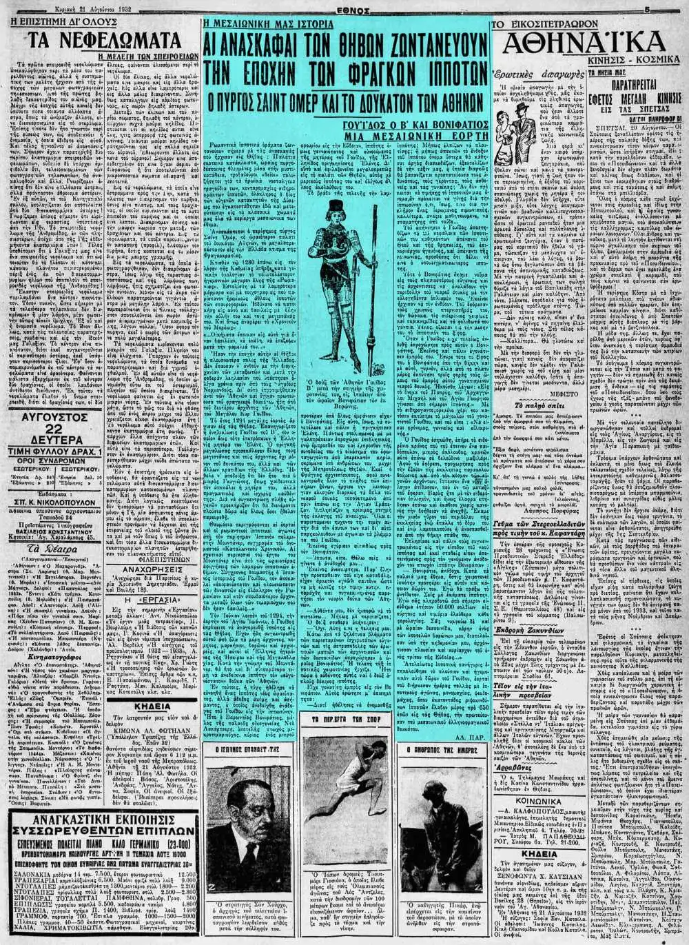 εφημερίδα “ΕΘΝΟΣ”, στις 21/08/1932…