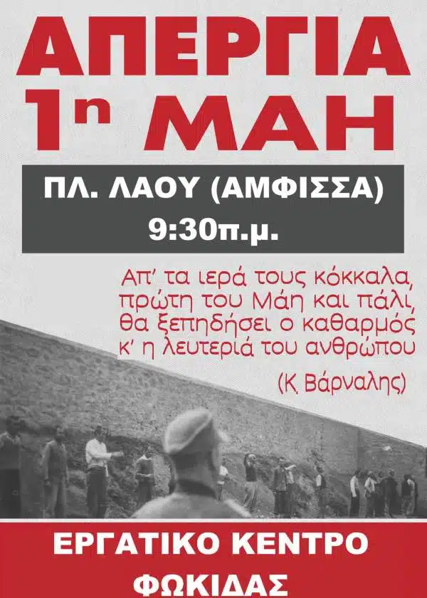 Για όλους εμάς, η Εργατική Πρωτομαγιά είναι εδώ όχι ως μνημείο αλλά ως σύμβολο αγώνα. Η ιστορική μνήμη, όπως και η σύγχρονη πείρα, δίνουν τα διδάγματα και δείχνουν τη συνέχεια.