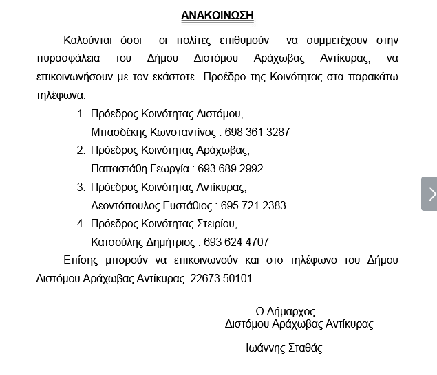 Ο Δήμος Διστόμου-Αράχωβας-Αντίκυρας ενημερώνει ότι σήμερα Τρίτη 23 Ιουλίου, θαυπάρχει έκτακτη διακοπή υδροδότησης στην Αράχωβα, από τις...