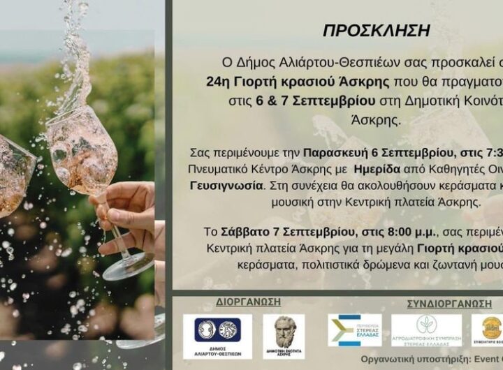 Eκδηλώσεις “Σκουρτανιώτεια 2024” που διοργανώνουν ο Δήμος Αλιάρτου-Θεσπιέων και η Δ.Κ Μαυρομματίου.