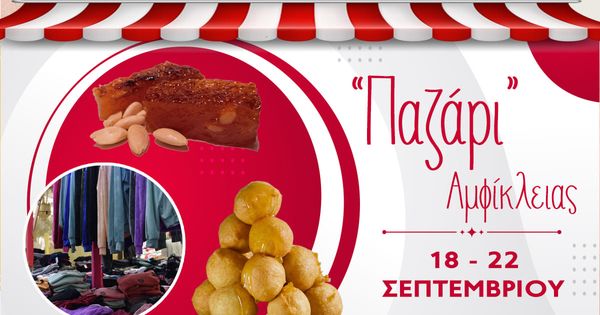 Έναρξη των εμποροπανηγύρεων στον Δήμο μας, με το παζάρι της Αμφίκλειας να ξεκινάει την Τετάρτη 18 Σεπτεμβρίου...