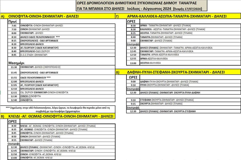 Ανακοίνωση για δρομολόγια Δημοτικής συγκοινωνίας για τα μπάνια – Καλοκαίρι 2024. Ο Δήμος Τανάγρας ανακοινώνει ότι από...