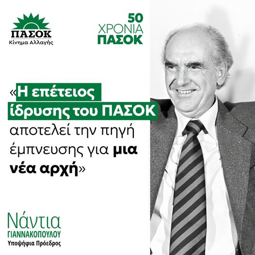 Δήλωση μου για την αυριανή επέτειο συμπλήρωσης 50 χρόνων από την ίδρυση του ΠΑΣΟΚ. “Πενήντα χρόνια από...