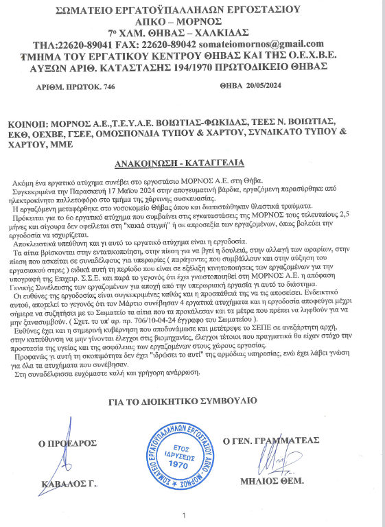 Αναλυτικά η ανακοίνωση του Εργατικού Κέντρου Θήβας: Την υπογραφή Επιχειρησιακών Σ.Σ.Ε. στα εργοστάσια συμφερόντων ΦΙΛΙΠΠΟΥ θα την...