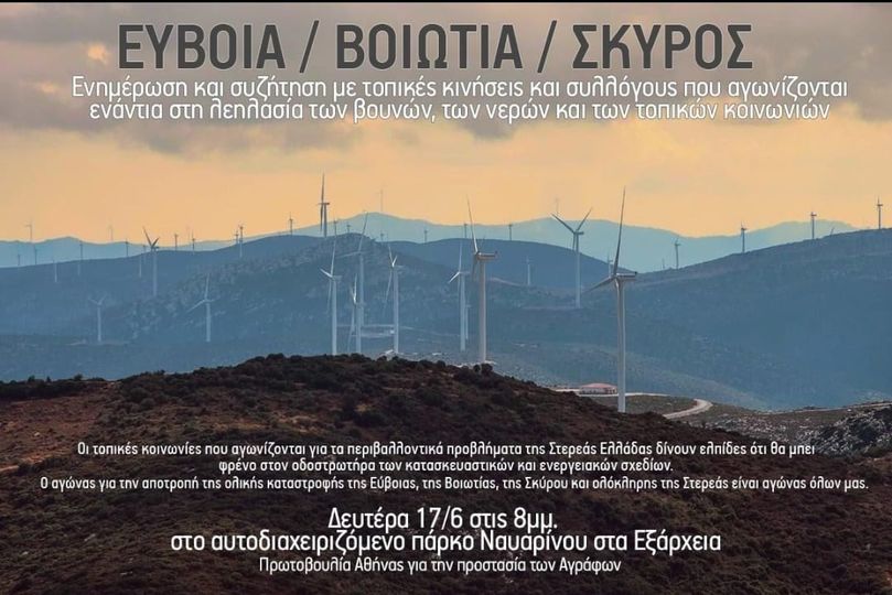Οι ανεξέλεγκτες εγκαταστάσεις ανεμογεννητριών στα βουνά μας συνεχίζονται χωρίς χωροταξικό πλαίσιο, χωρίς περιορισμούς και όπως συμβαίνει στον...