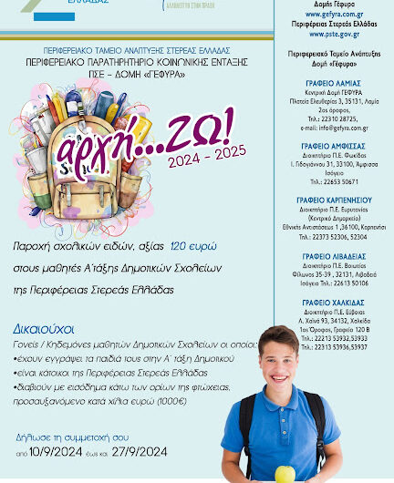 «αρχή…ΖΩ!» 𝔰𝔱𝔢𝔯𝔢𝔞 Β͇ο͇ι͇ω͇τ͇ί͇α͇ «αρχή…ΖΩ!» admin 11 Σεπτεμβρίου, 2024 Η δομή “ΓΕΦΥΡΑ” της Περιφέρειας Στερεάς Ελλάδας υλοποιεί για άλλη μια σχολική χρονιά τη δράση «αρχή…ΖΩ!» που...Read More