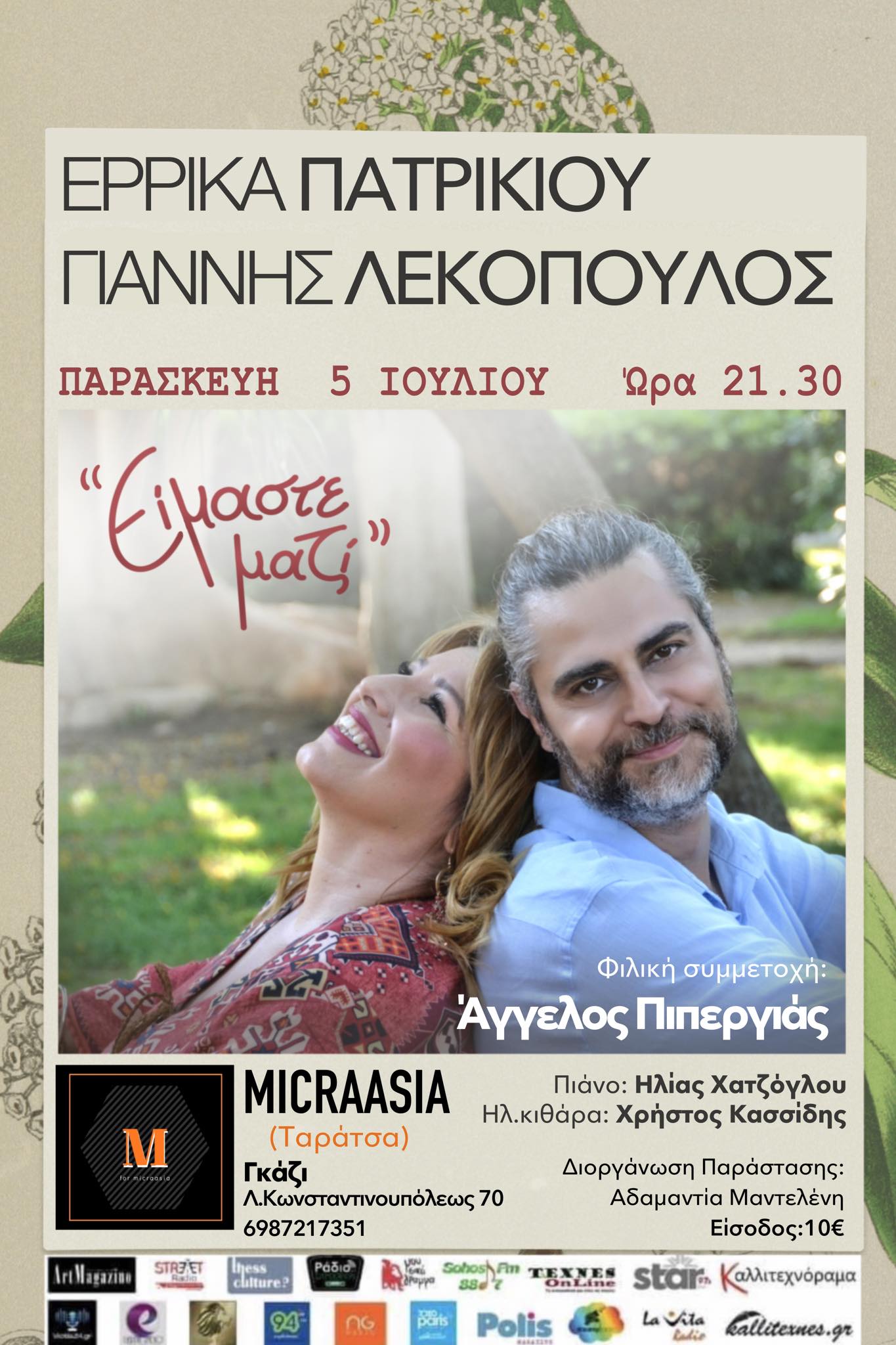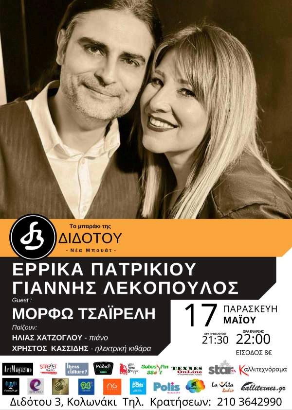 Χορηγός Viotia24.gr Η Έρρικα Πατρικίου και ο Γιάννης Λεκόπουλος ανταμώνουν την Παρασκευή 5Ιουλίου στην όμορφη ταράτσα του...