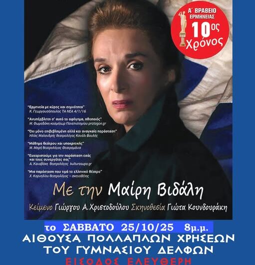 🎭Η θεατρική παράσταση «Λέλα Καραγιάννη, η Μάνα της Αντίστασης», το Σάββατο 25 Οκτωβρίου στους ΔελφούςΗ θεατρική παράσταση...