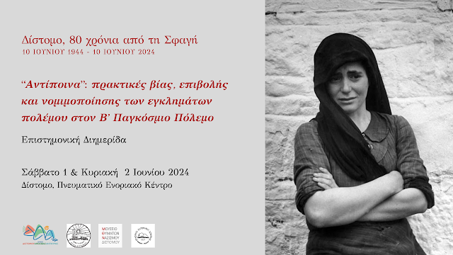 Ο Δήμος Διστόμου Αράχωβας Αντίκυρας σε συνεργασία με την Εταιρεία Σύγχρονης Ιστορίας, συνδιοργανώνουν στο πλαίσιο των Επετειακών Εκδηλώσεων Μνήμης της...