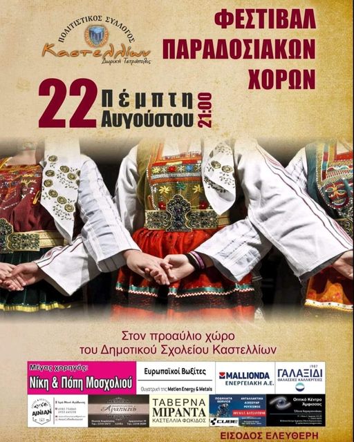 Την Πέμπτη 22/8 χορεύουμε στα Καστέλλια!!! Ευχαριστούμε πολύ το ΔΣ του Πολιτιστικού Συλλόγου Καστελλιων” η Δωρική Τετραπολις”...