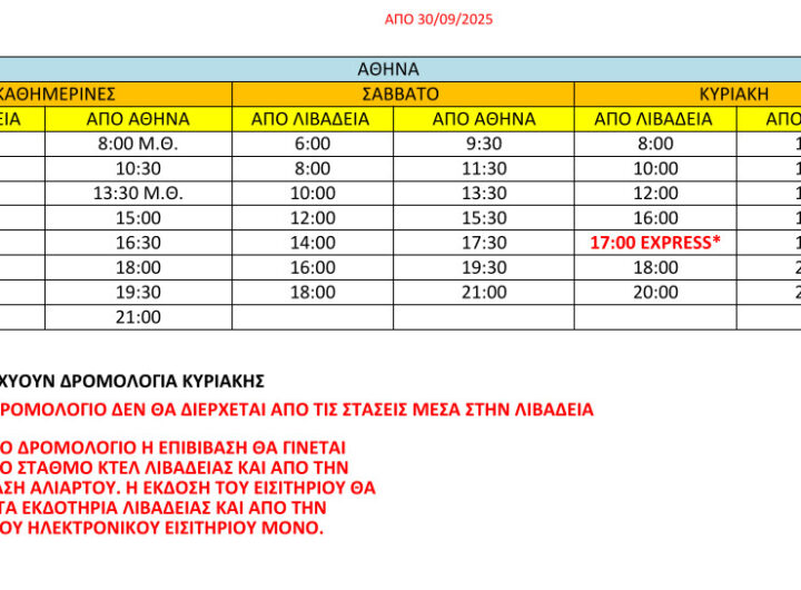΄ΚΤΕΛ Λιβαδειάς:Νέο δρομολόγια για την Αθήνα Β͇ο͇ι͇ω͇τ͇ί͇α͇ ΄ΚΤΕΛ Λιβαδειάς:Νέο δρομολόγια για την Αθήνα admin 30 Σεπτεμβρίου, 2025 Από την Κυριακή 5 Οκτωβρίου και κάθε Κυριακή θα υπάρχει νέο δρομολόγιο του ΚΤΕΛ, από Λιβαδειά προς...Read More