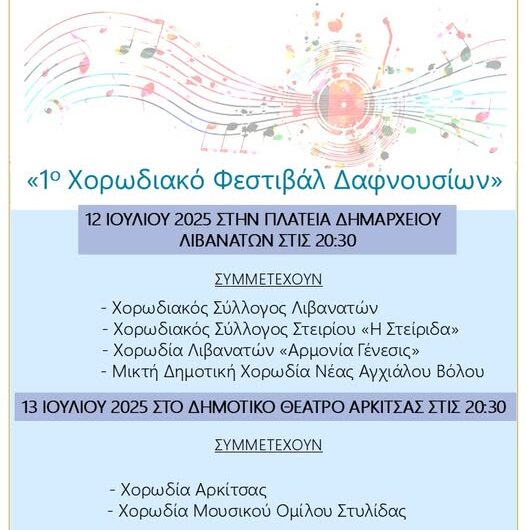 Με επιτυχία πραγματοποιήθηκε η πρώτη ημέρα του 1ου Χορωδιακού Φεστιβάλ Δαφνουσίων που διοργάνωσε ο Δήμος Λοκρών στις...