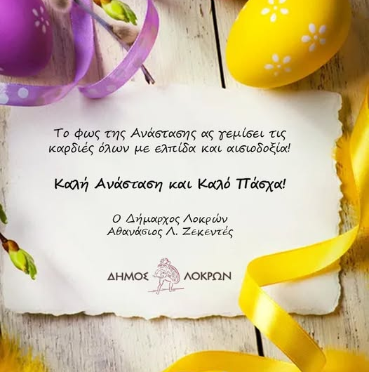 Ευχές για Καλό Πάσχα από τον Δήμαρχο Λοκρών Ευχές Ευχές για Καλό Πάσχα από τον Δήμαρχο Λοκρών admin 6 Απριλίου, 2026 Read More