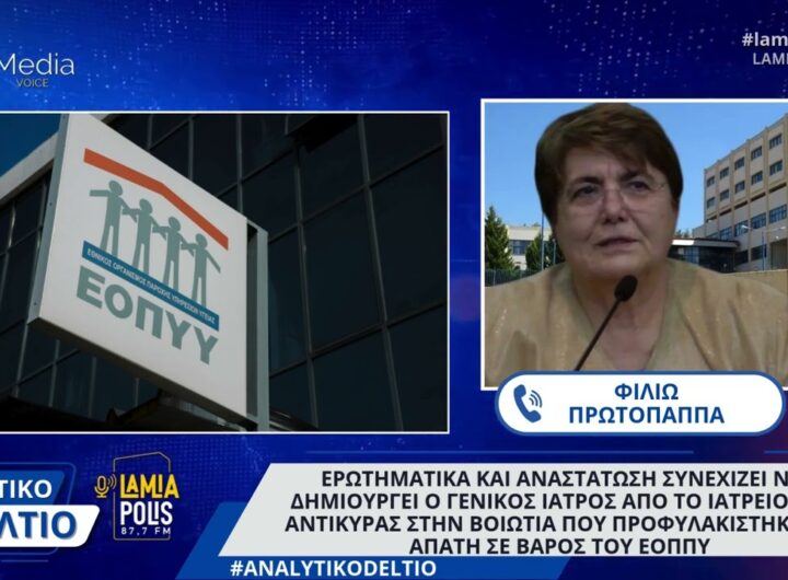 Τι είπε η πρόεδρος του Ιατρικού Συλλόγου Θήβας κ.Φιλιώ Πρωτόπαπα(Video) Συνεντεύξεις Τι είπε η πρόεδρος του Ιατρικού Συλλόγου Θήβας κ.Φιλιώ Πρωτόπαπα(Video) admin 21 Σεπτεμβρίου, 2024 Ερωτηματικά και αναστάτωση συνεχίζει να δημιουργεί ο Γενικός Ιατρός από το ιατρείο της Αντίκυρας στην Βοιωτία που...Read More