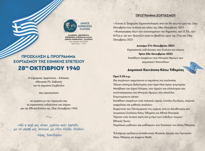 Η 28η Οκτωβρίου είναι ημέρα εθνικής μνήμης και συλλογικής ανάτασης για τον Ελληνισμό. Τιμούμε με υπερηφάνεια τη...