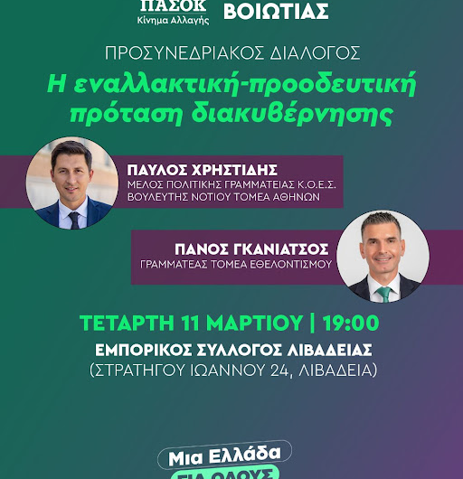 Η Ν.Ε. ΠΑΣΟΚ – Κινήματος Αλλαγής Βοιωτίας διοργανώνει προσυνεδριακό διάλογο στη Λιβαδειά, στο πλαίσιο της πολιτικής συζήτησης...